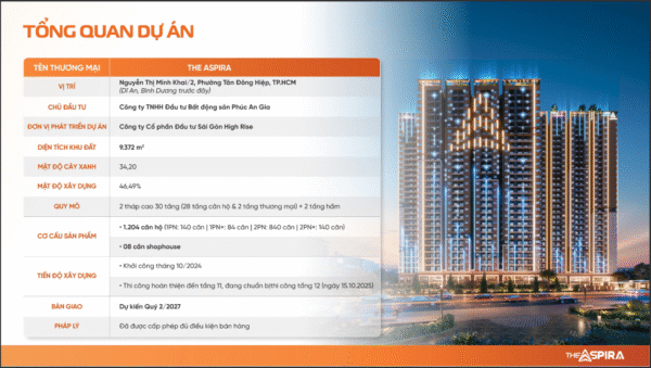 The Aspira được phát triển với định hướng trở thành khu căn hộ hiện đại, kết nối giao thông nhanh chóng, đồng bộ tiện ích và phù hợp với nhu cầu ở thực ngày càng tăng tại TP.HCM.