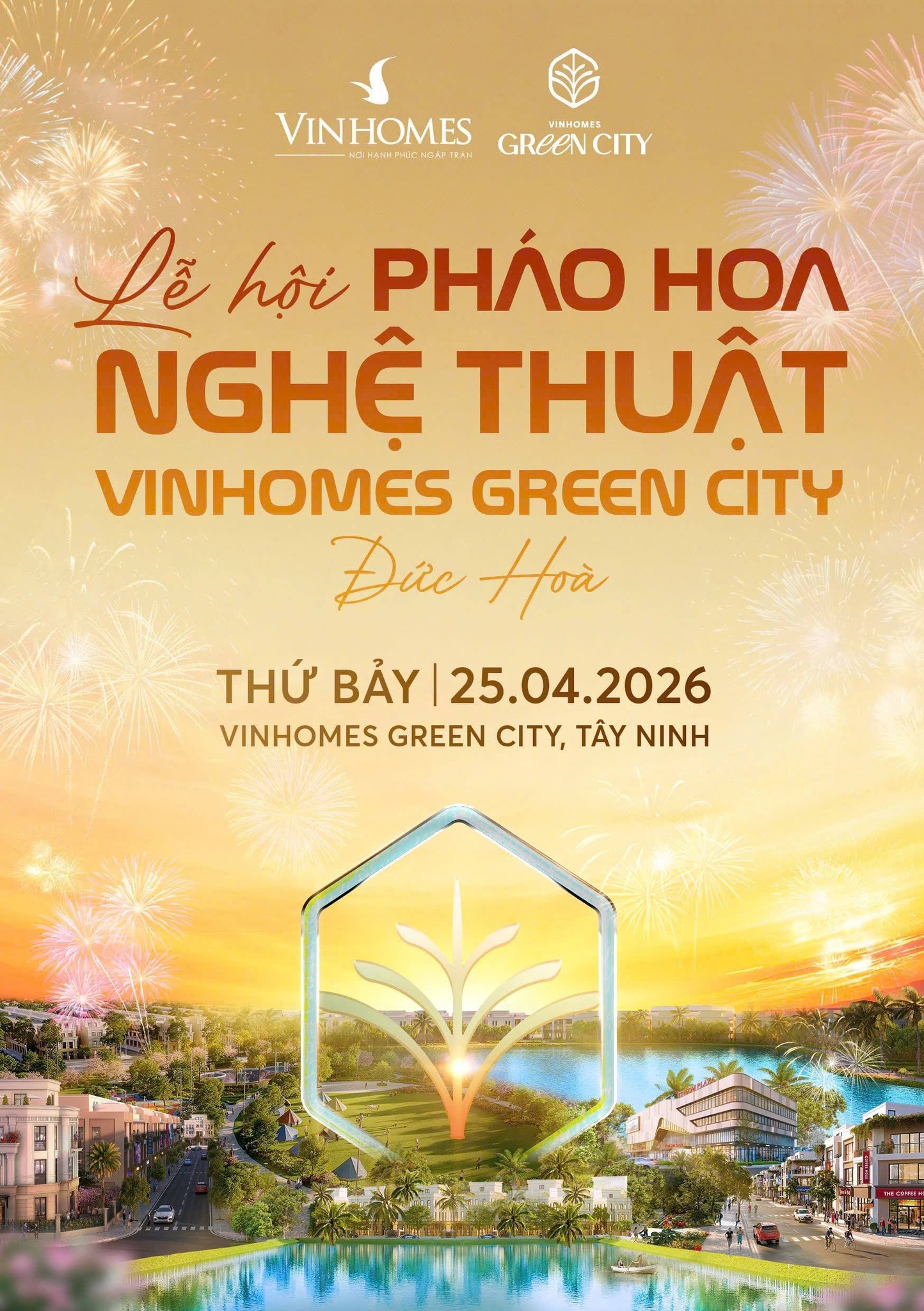 Được tổ chức vào ngày 25/04/2026, chương trình không chỉ mang đến màn trình diễn pháo hoa nghệ thuật đặc sắc mà còn là hoạt động xúc tiến thương mại quy mô, góp phần gia tăng sức nóng cho thị trường bất động sản Long An.