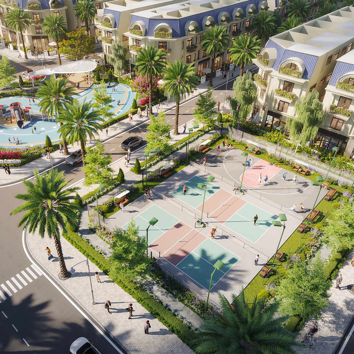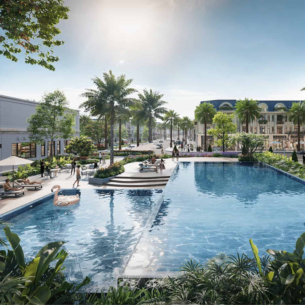 Hạ tầng nội khu được quy hoạch đồng bộ với hệ thống đường nội bộ rộng từ 12–30 m, hệ thống điện âm và nước sạch chuẩn chỉnh, các không gian xanh và mặt nước rộng lớn tạo bầu không khí trong lành, thân thiện. Trong khi đó, hạ tầng ngoại khu kết nối đa chiều tới các tiện ích trong vùng như: