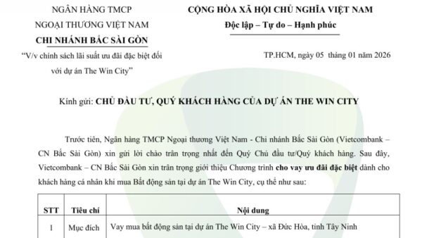 The Win City không chỉ là dự án căn hộ – nó là quần thể đô thị sinh thái hiện đại phát triển theo định hướng cộng đồng sống tiện nghi, liên kết giao thông chiến lược và giá trị đầu tư bền vững. Với vị trí đắc địa tại cửa ngõ Tây Sài Gòn, pháp lý hoàn chỉnh, hệ thống tiện ích nội – ngoại khu đồng bộ và phương thức thanh toán linh hoạt, The Win City là lựa chọn hấp dẫn cho cả an cư và đầu tư dài hạn tại thị trường phía Nam.